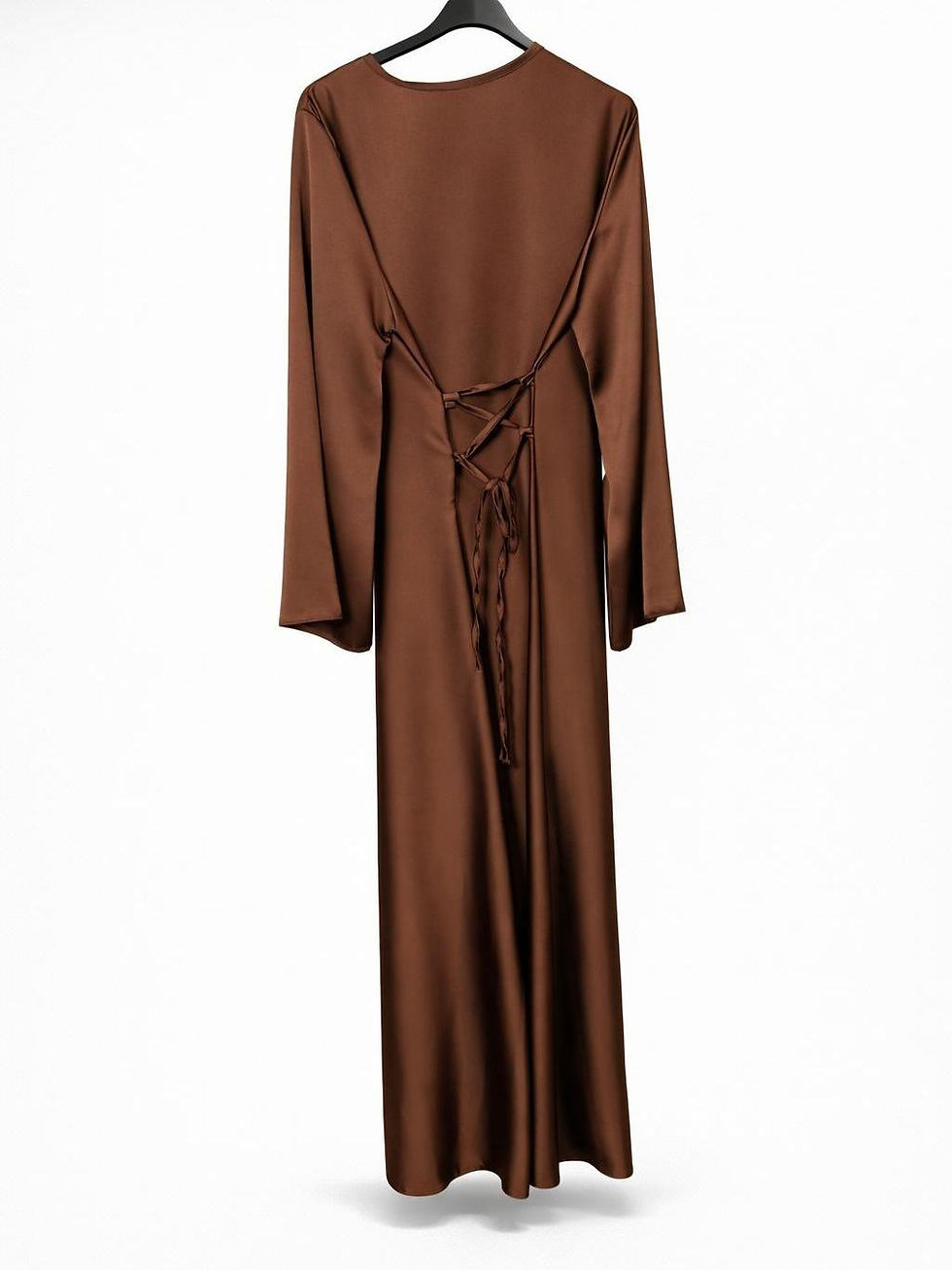 Robe Bella Façon Satin Resserée à l'Arrière avec Un Fil Couleur Marron pour une